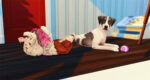 Shiloh heard my voice and awoke from her nap startled to see the four-legged stranger with me. Or maybe she was more upset I allowed him to play with her favorite toy since dogs are childish like that.