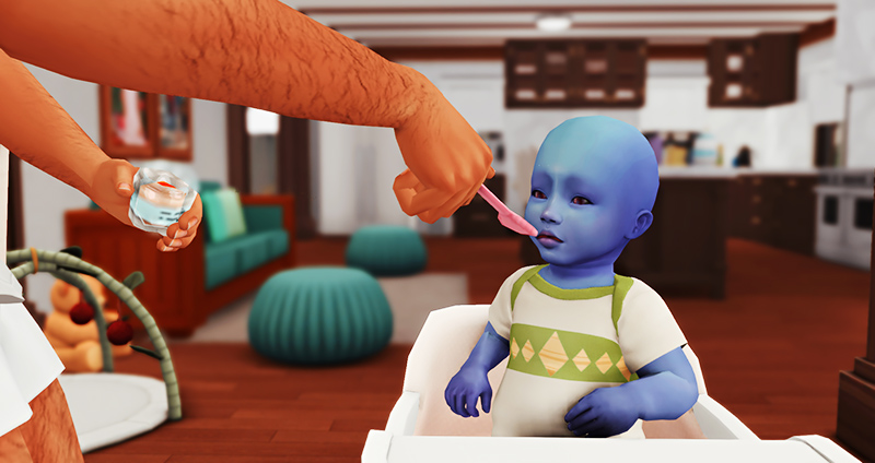 The laugh that slipped out of me was quick and thin, but it cracked the ice glazed over my heart, if only for a moment. I finally looked at what I had given him: mashed peas. Guess we won’t be trying that one again. Watching him grimace reminded me this was still just the start of our journey together. I didn’t know the first thing about alien babies, but just like Sim babies, he’ll never hesitate to tell me when I get it wrong.