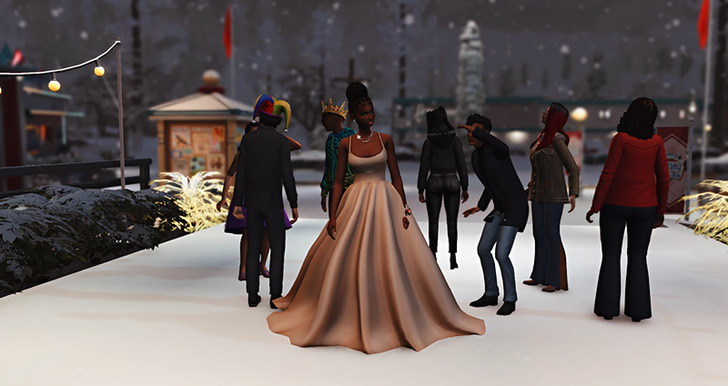 Most everyone had changed out of their suits and gowns by the time we arrived at the pier. The snowfall was even thicker, blurring the path ahead. Only me and Tami were brave enough to keep our dresses on. That’s why we were the queens of the school, and everyone bowed to us. We probably should have canceled and gone home, but it was tradition to hang out at the pier after prom. Magical things happen at the pier, and we couldn’t miss out, so we stayed.