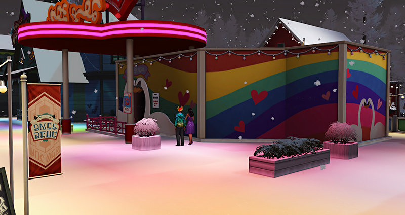 The cart lurched forward, creaking into the tunnel. Fog hissed from hidden vents, wrapping around us like cheap Spooky Day dry ice. Neon stars flickered overhead. And then, right on cue, Frank the Flying Womp Womp crooned in a buttery baritone voice about eternal love.
