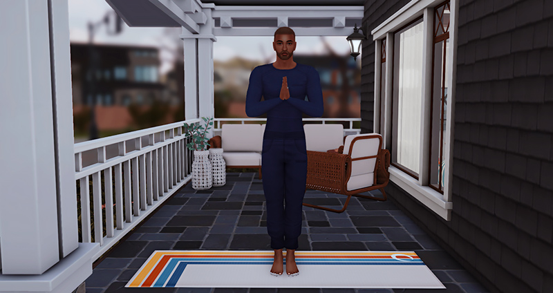 “Now, bring your palms together at your chest. That’s Prayer Pose. You can close your eyes if you want, or keep ’em open. Doesn’t matter. Just breathe. It doesn’t matter how flexible you are. If you can breathe, you can do yoga.”