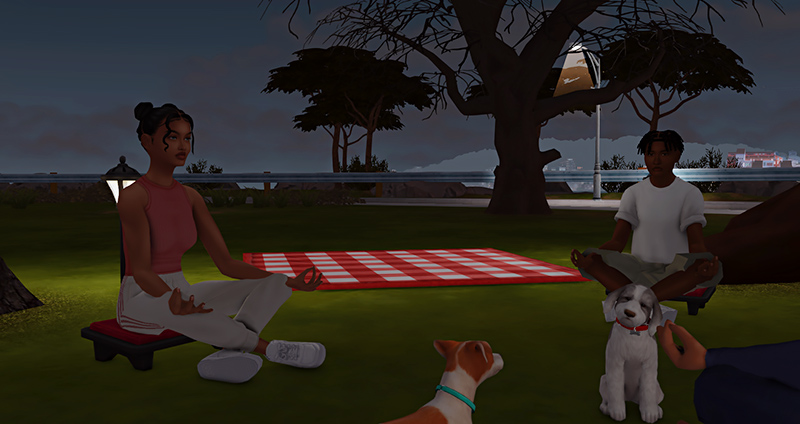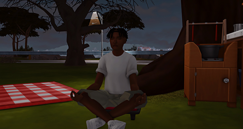 “Hands on your knees, palms up. It’s best if you close your eyes, but that’s up to you. Just breathe. In through the nose, out through the mouth.”