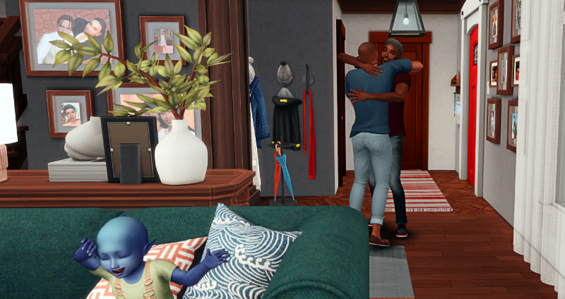 Logan hopped off the couch and marched straight toward him. “I watch catoons wif Unca Jussy!”