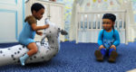 Cy looks like, heh, you keep jumping on daddy’s dog if you want to!