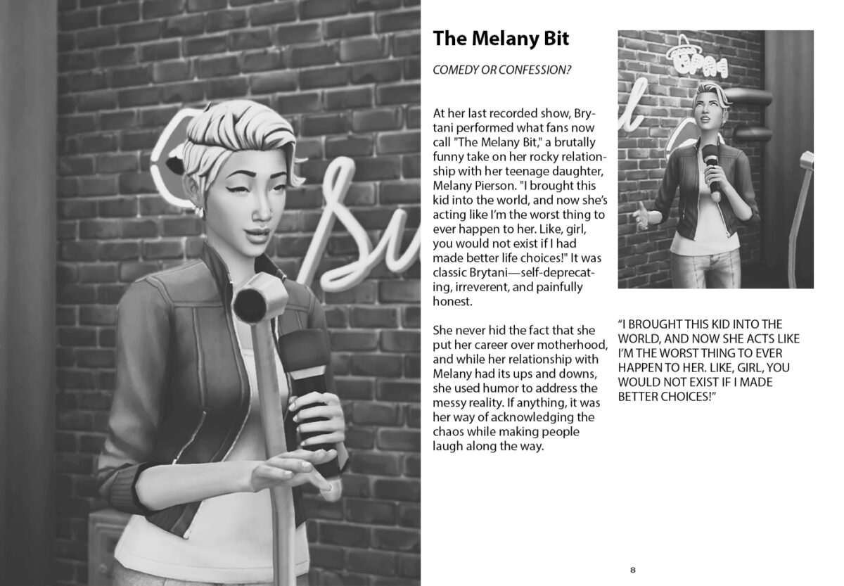 At her last recorded show, Brytani performed what fans now call “The Melany Bit,” a brutally funny take on her rocky relationship with her teenage daughter, Melany Pierson. “I brought this kid into the world, and now she’s acting like I’m the worst thing to ever happen to her. Like, girl, you would not exist if I had made better life choices!”