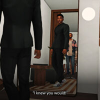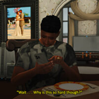 Nick arrives and Anissa and Jorden’s house to pick them up to travel to Henford. He is fully prepared for Melany’s reaction to his shave.